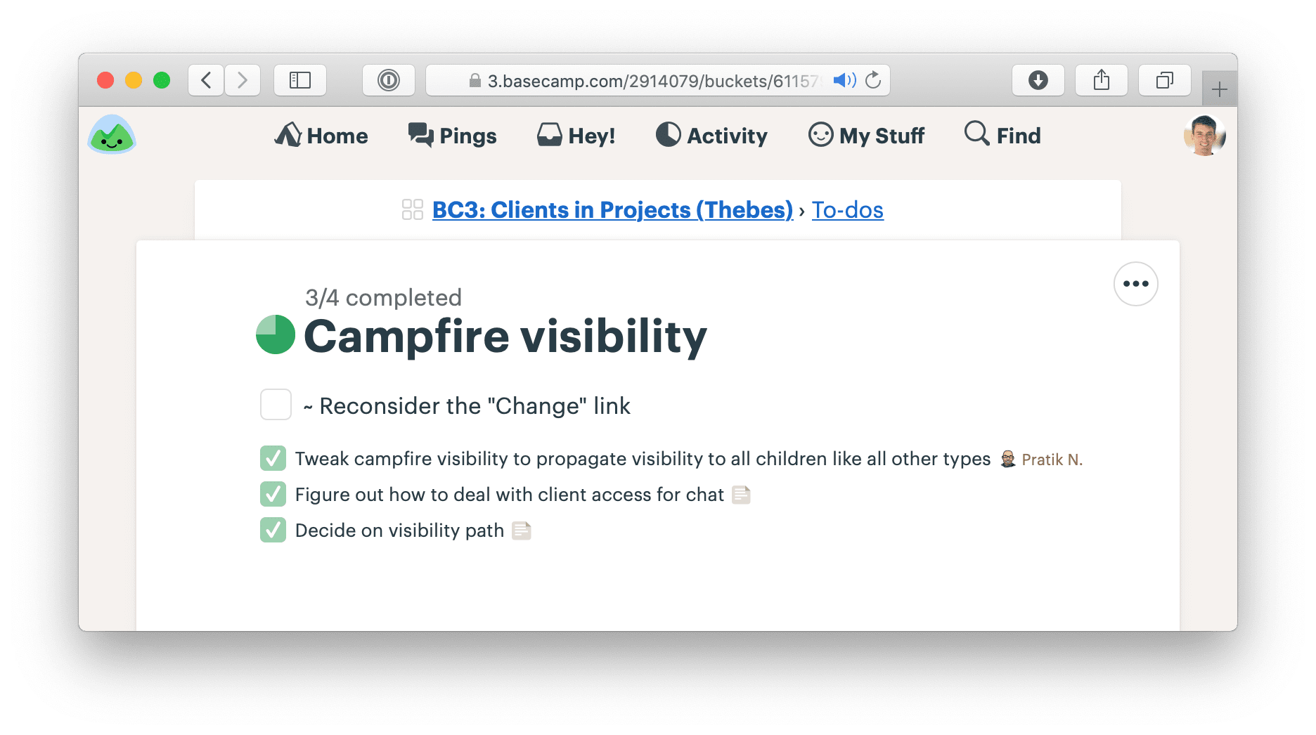 Throughout the cycle, you’ll hear our teams talking about must-haves and nice-to-haves as they discover work. The must-haves are captured as tasks on the scope. The scope isn’t considered “done” until those tasks are finished. Nice-to-haves can linger on a scope after it’s considered done. They’re marked with a tilde (~) in front. Those tasks are things to do if the team has extra time at the end and things to cut if they don’t. Usually they never get built. The act of marking them as a nice-to-have is the scope hammering.