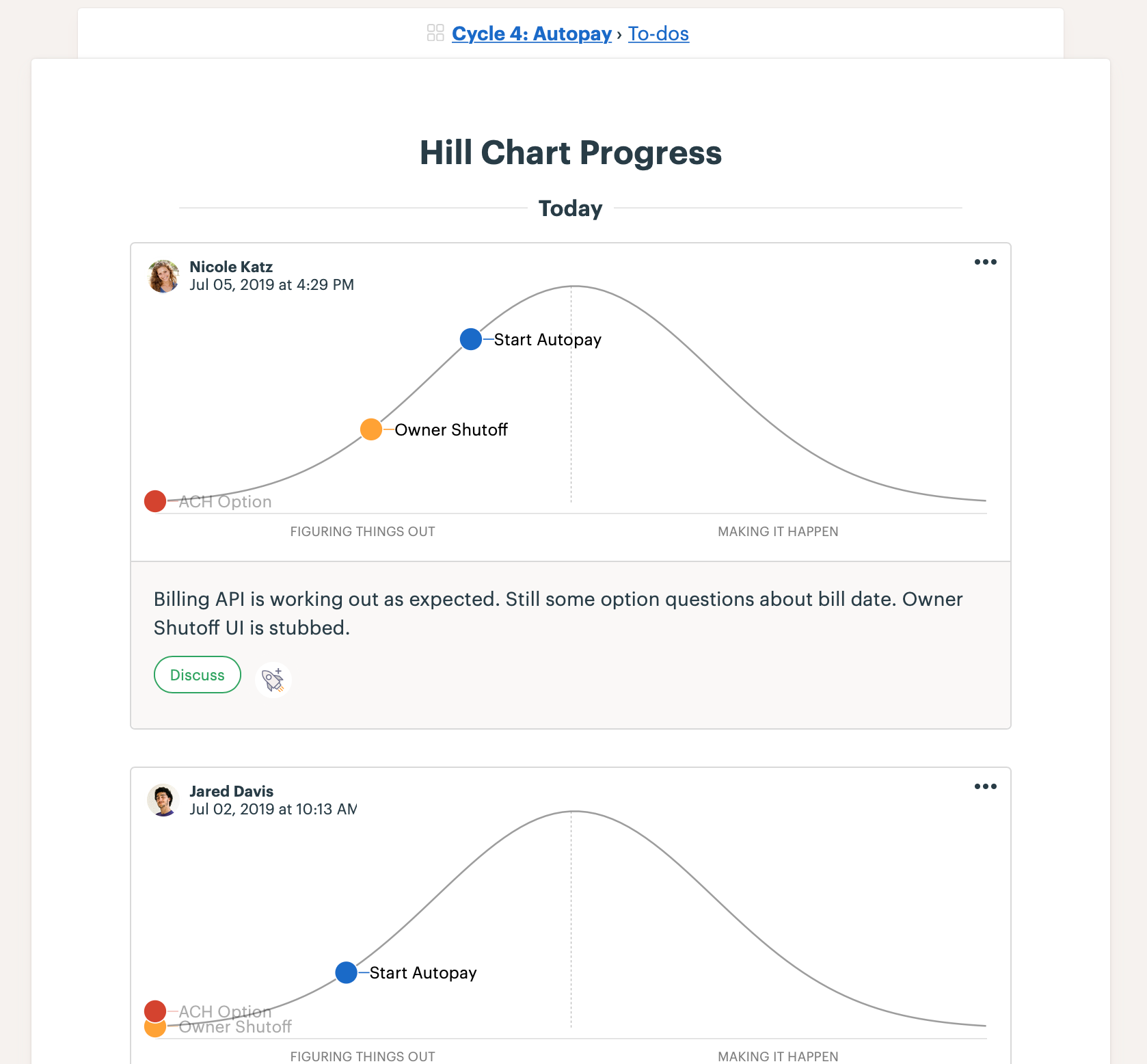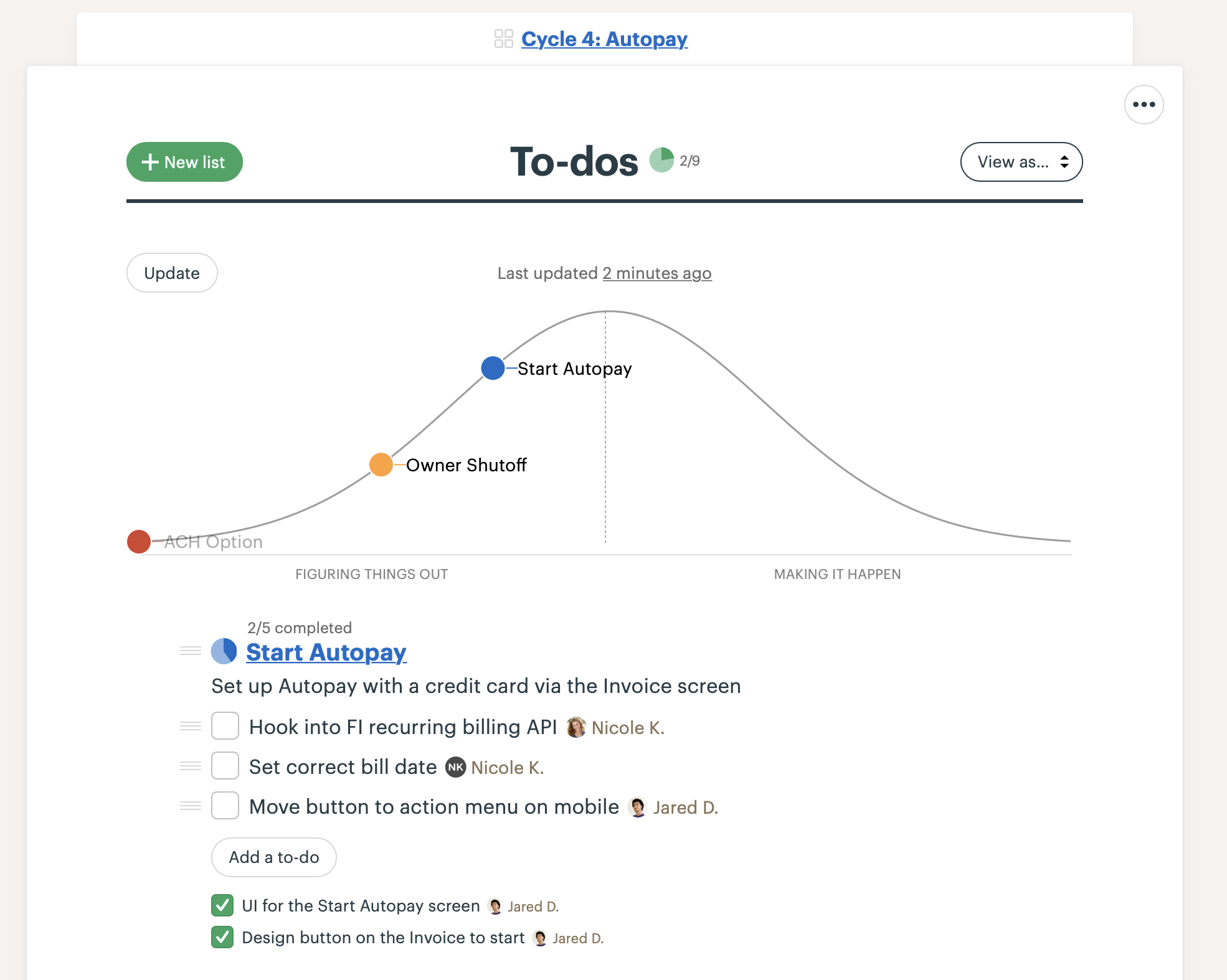 The updated Hill Chart appears at the top of the To-Dos page