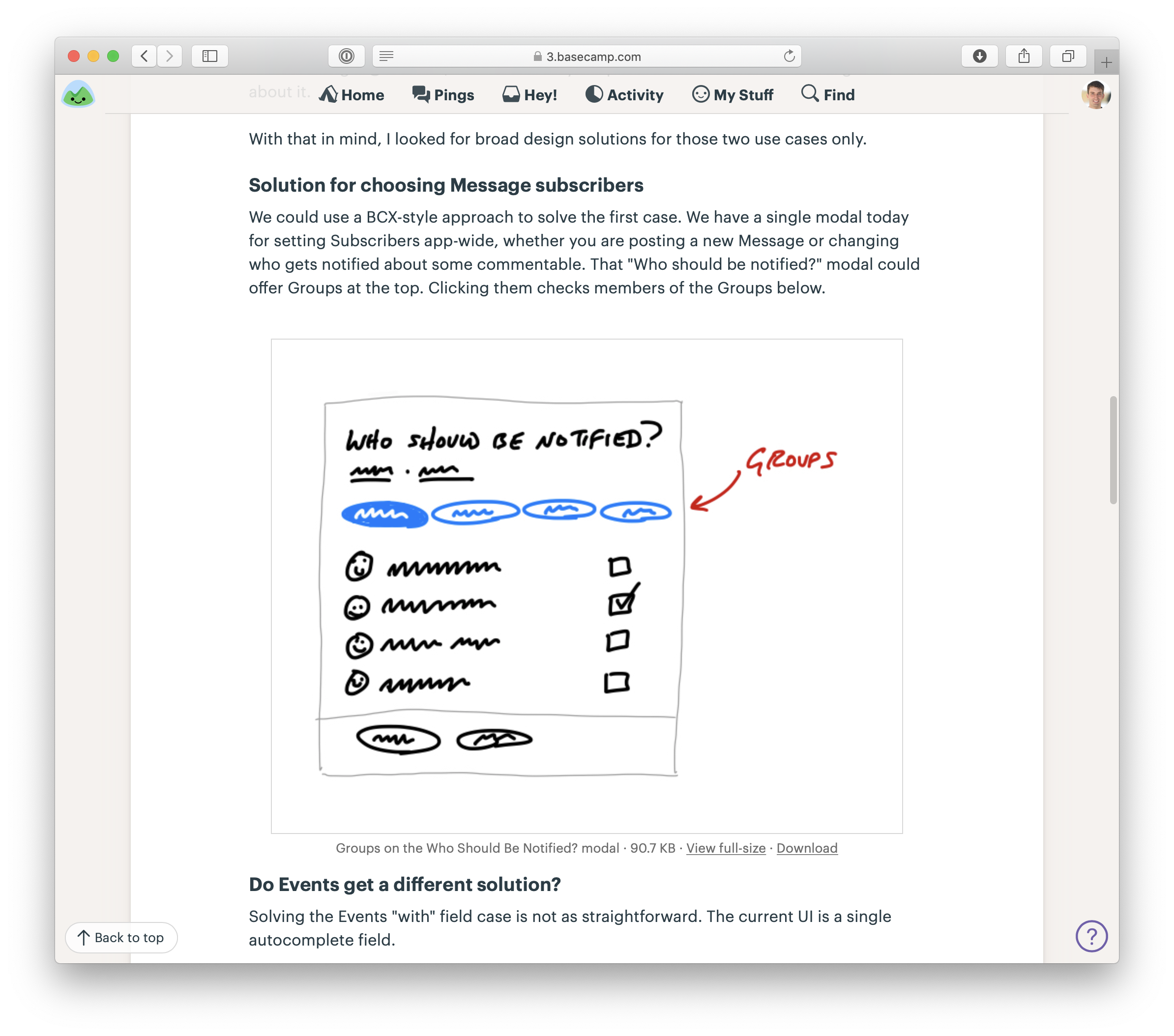 Pitches on the Message Board of the Product Strategy team in Basecamp
